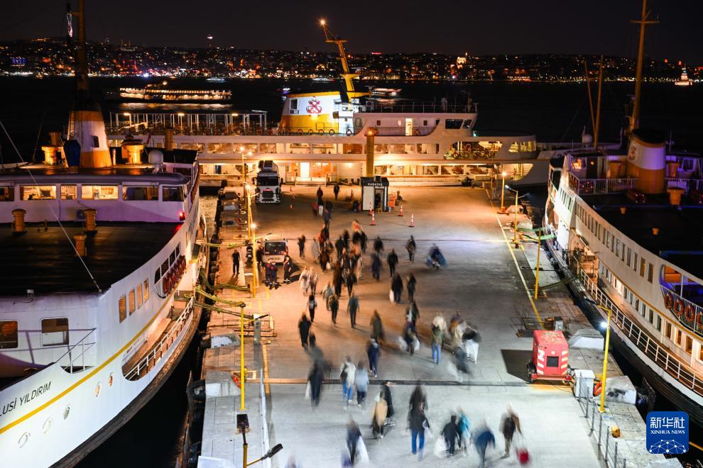 11月20日,在土耳其伊斯坦布尔,乘客在博斯普鲁斯海峡一处码头登船。
