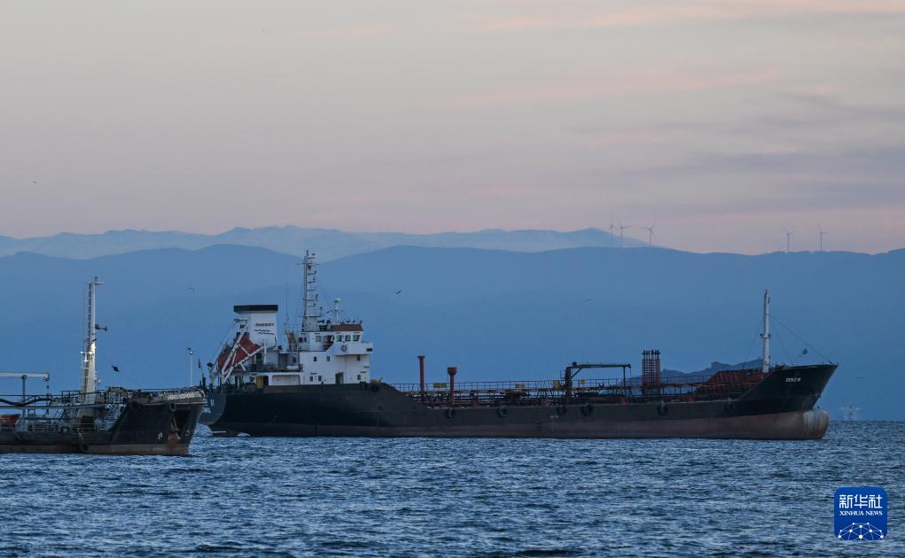 这是11月25日拍摄的停泊在土耳其伊斯坦布尔马尔马拉海上的船只(无人机照片)。
