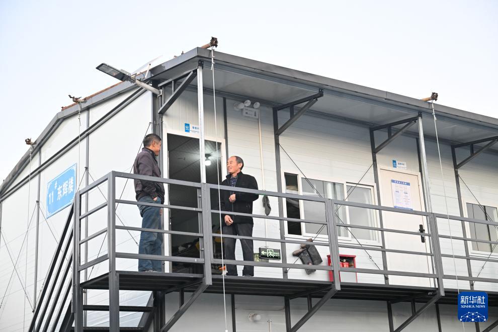 11月25日,工人下班后在苏州北站新时代建筑工人社区住宿区闲聊。