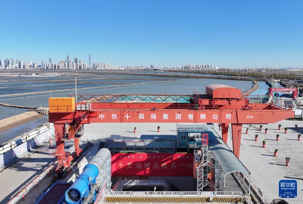 11月27日拍摄的津潍高铁津沽海河隧道。