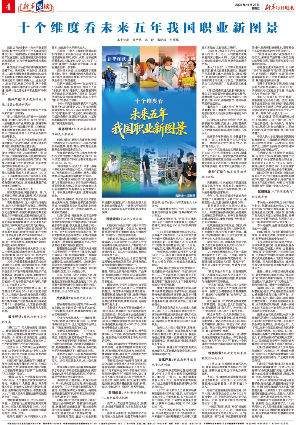 近日公布的《中共中央关于制定国民经济和社会发展第十五个五年规划的建议》(以下简称《建议》)描绘我国未来五年发展蓝图。这份纲领性文件关乎国家宏观战略,也与劳动者的职业未来息息相关。