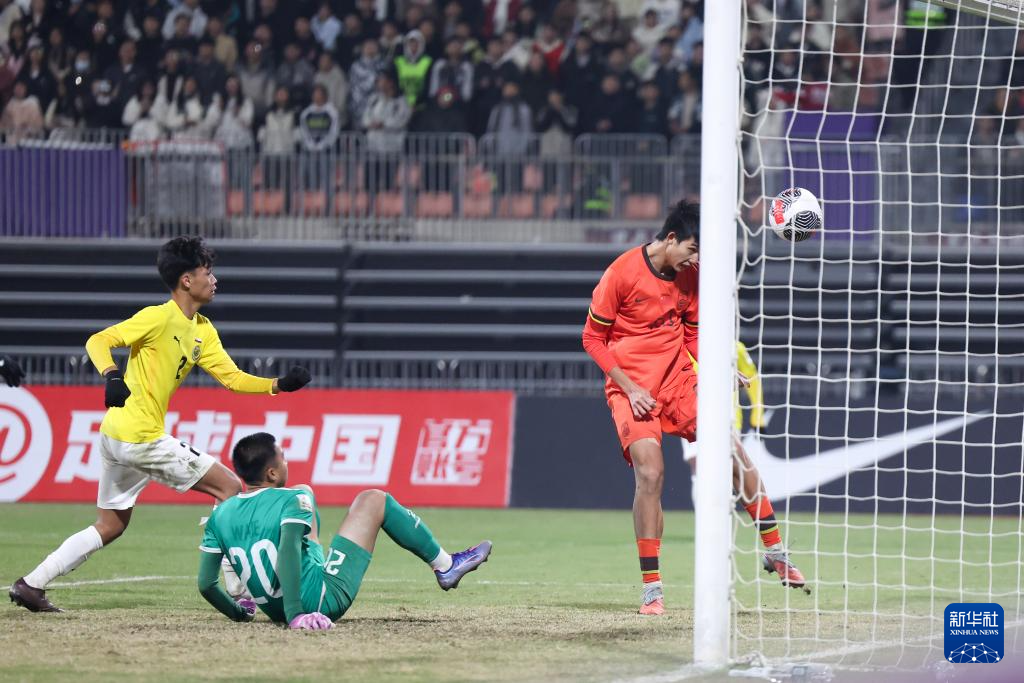 11月26日,中国队球员李铭杰(右二)在比赛中头球破门。