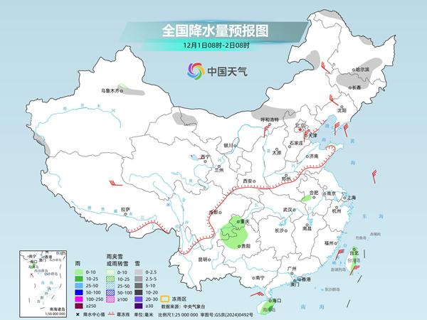 今明天(11月30日至12月1日),受寒潮影响,我国北方将迎明显降温,东北等地局地降幅可超10℃,体验隔天换季,公众需加强保暖措施。寒潮还将给北方带来大风沙尘天气,外出需注意防护。