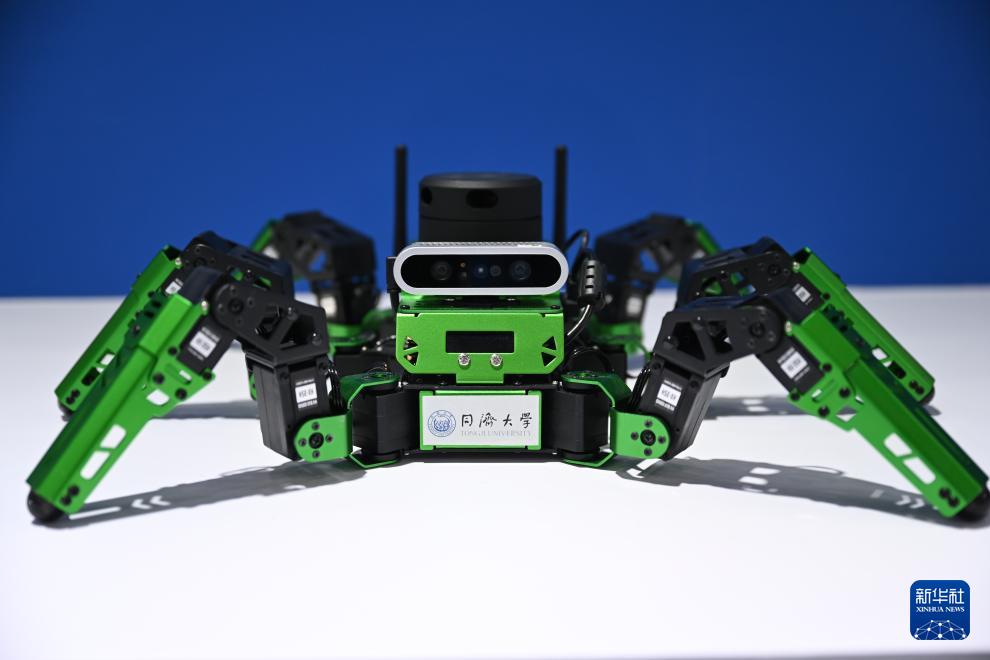 这是12月1日在“侨智汇”成果发布区拍摄的“爬行蜘蛛人”机器人。