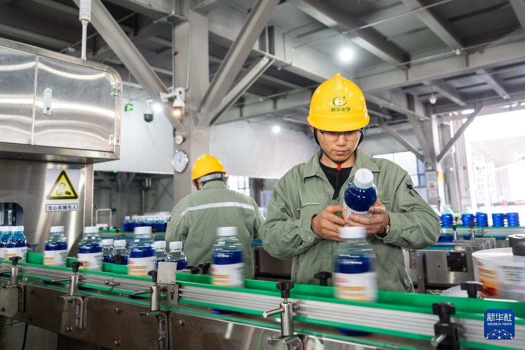 12月1日,在津市高新区的湖南利尔生物科技有限公司制剂车间,工作人员抽检除草剂成品。