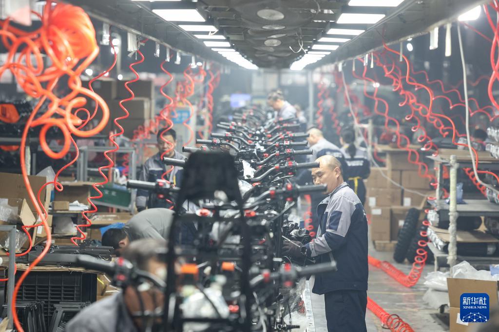 12月2日,在重庆炙焱动力制造有限公司,工人在生产线上组装出口的摩托车。