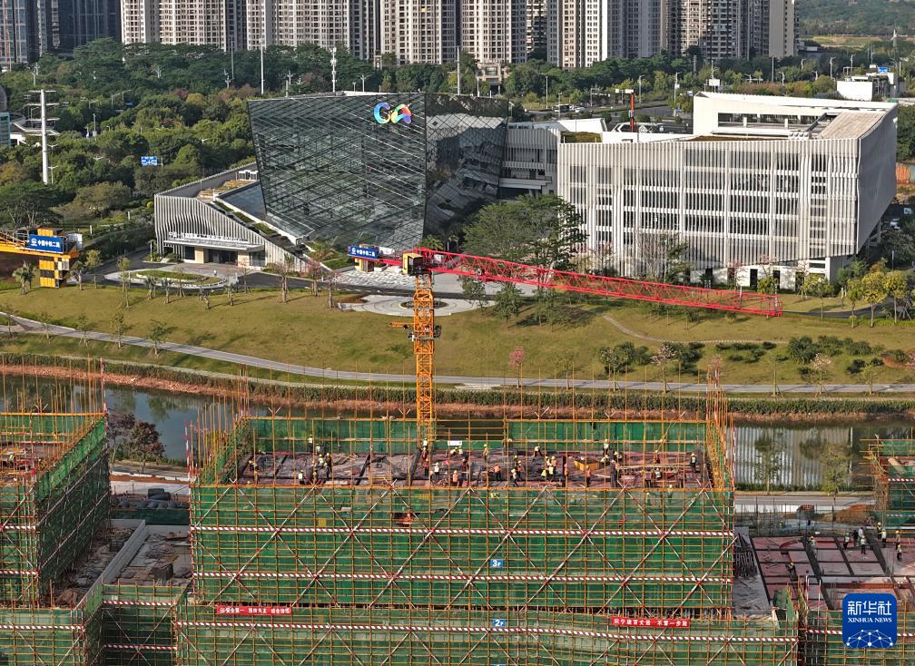 这是中国—东盟国家人工智能应用合作中心人工智能企业研发基地项目建设现场(12月2日摄,无人机照片)。