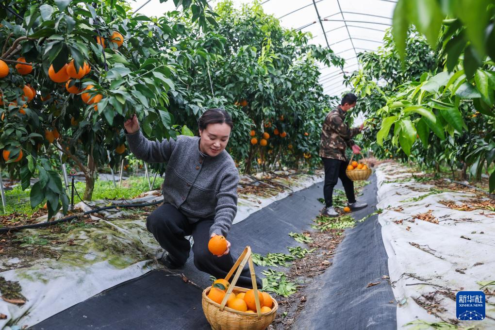 12月4日,游客在长兴县和平镇东山村四季鲜果家庭农场体验采摘游。