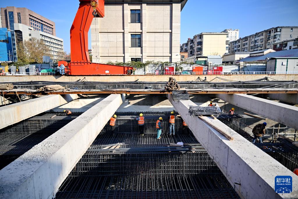 12月9日,中铁二十局工人在石家庄市地铁5号线一期03工区施工现场捆绑钢筋。