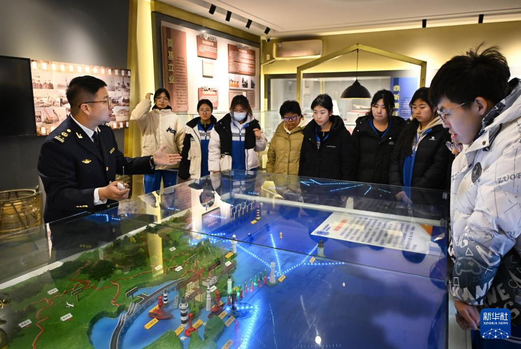 12月10日,青岛航标处工作人员在团岛灯塔博物馆内为学生讲解。