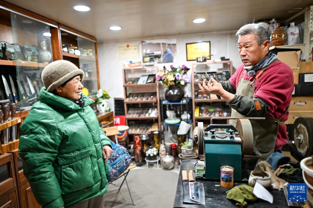 初冬的上午,天津的“修补巷”很是热闹,磨菜刀、修自行车……几十家开在巷子里的“修补小店”不断迎来顾客。
