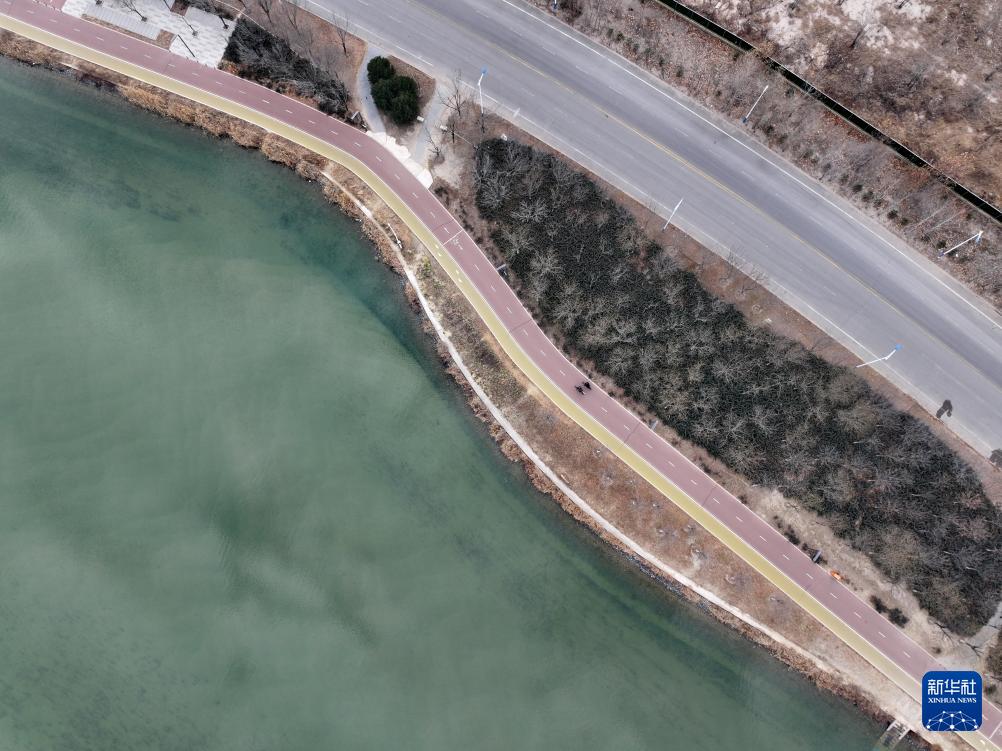 这是石家庄市滹沱河沿线的环城绿道(12月10日摄,无人机照片)。