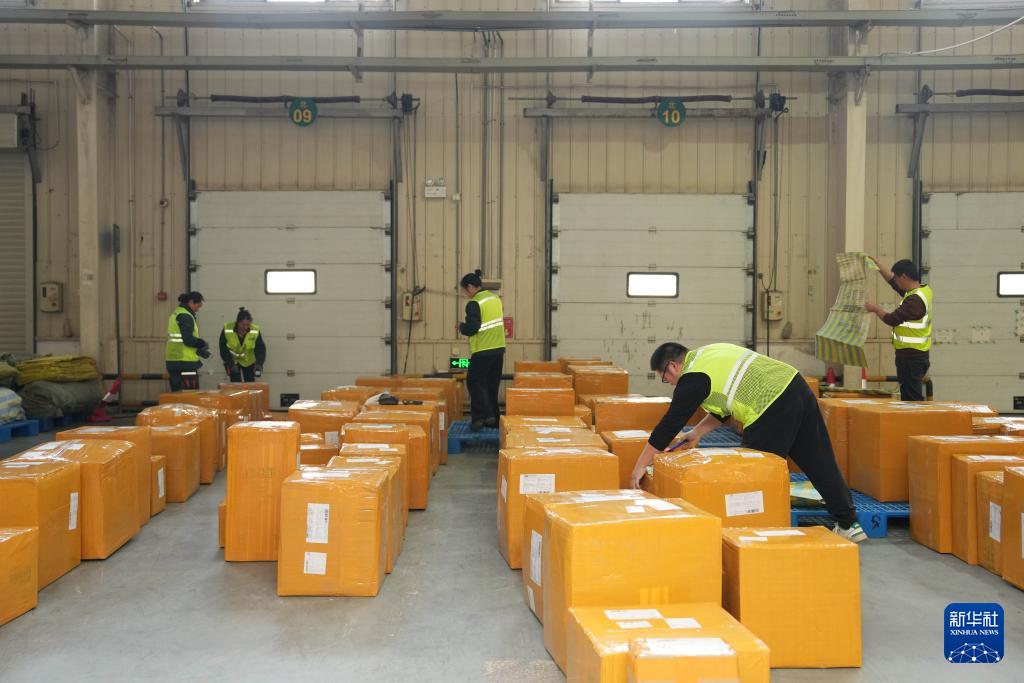 12月10日,工作人员在长沙国际邮件互换局分拣、分发出口包裹。