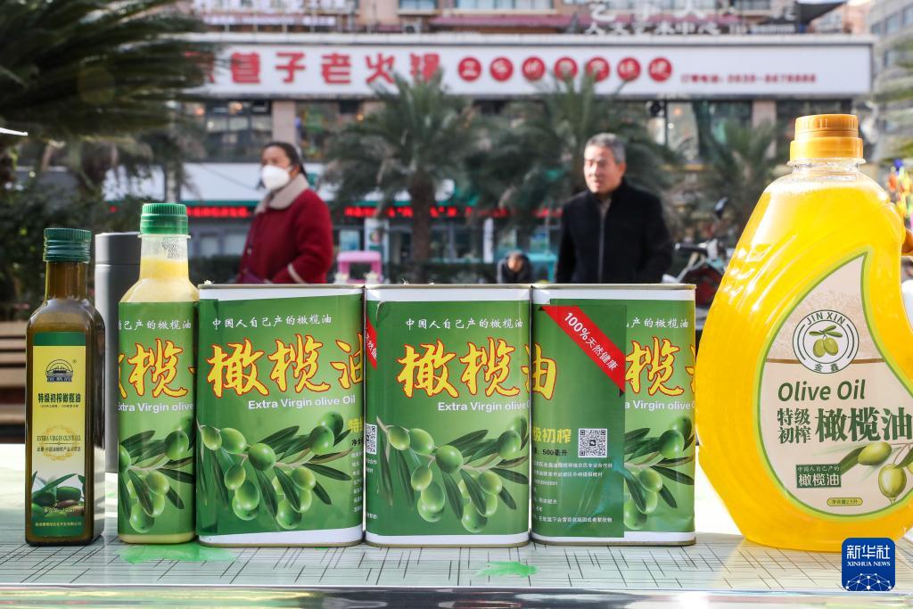 这是12月14日在陇南市武都区“冬至大集”摊位上拍摄的橄榄油。