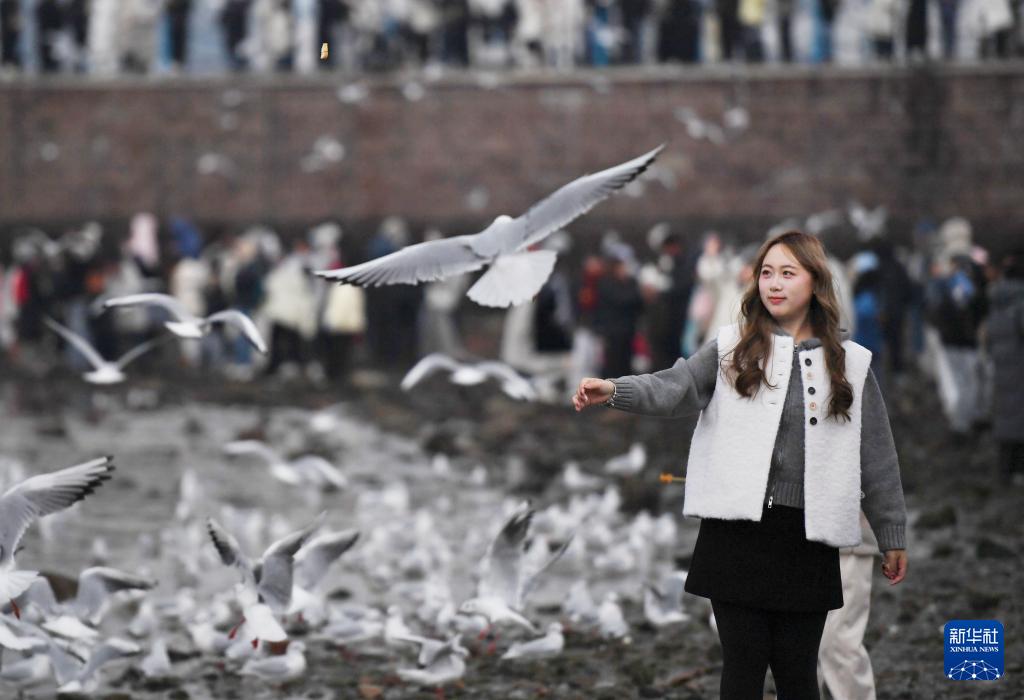 冬日,众多海鸥聚集在青岛栈桥景区飞舞、觅食,成为当地冬季旅游的标志性景观。