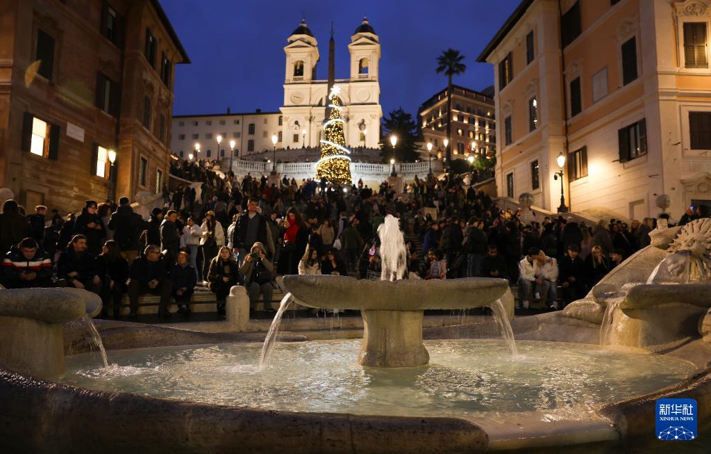 近日,意大利罗马的主要地标建筑和市中心街道点亮节日彩灯,为冬日增添缤纷色彩。