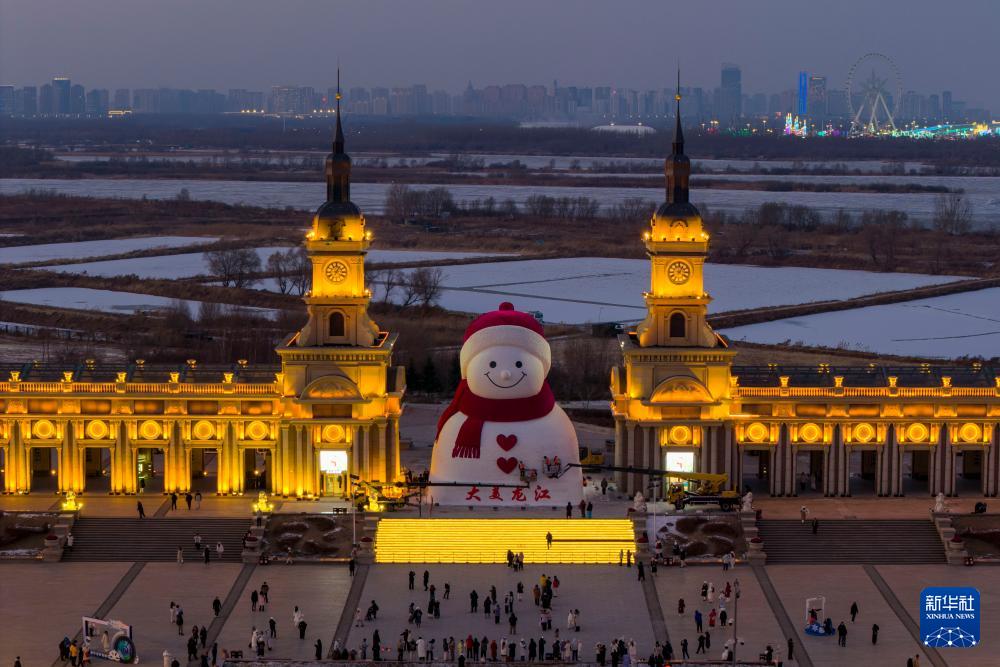 这是12月15日在哈尔滨市群力音乐公园拍摄的大雪人(无人机照片)。