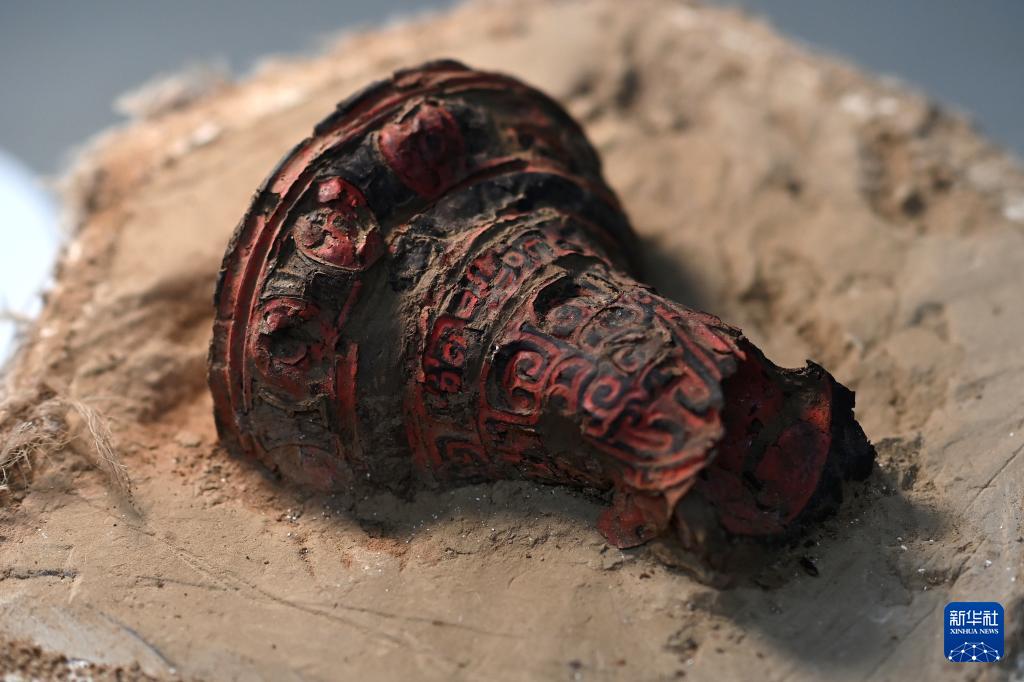 12月12日在陕西省考古研究院文物保护实验室拍摄的瓦窑沟墓地出土漆器。