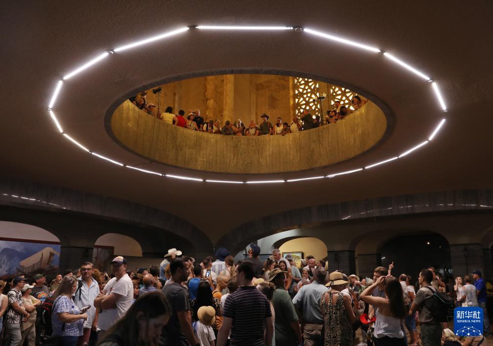 12月16日,人们聚集在南非比勒陀利亚的先民纪念馆内等待正午12点的阳光照在该馆的纪念碑上。
