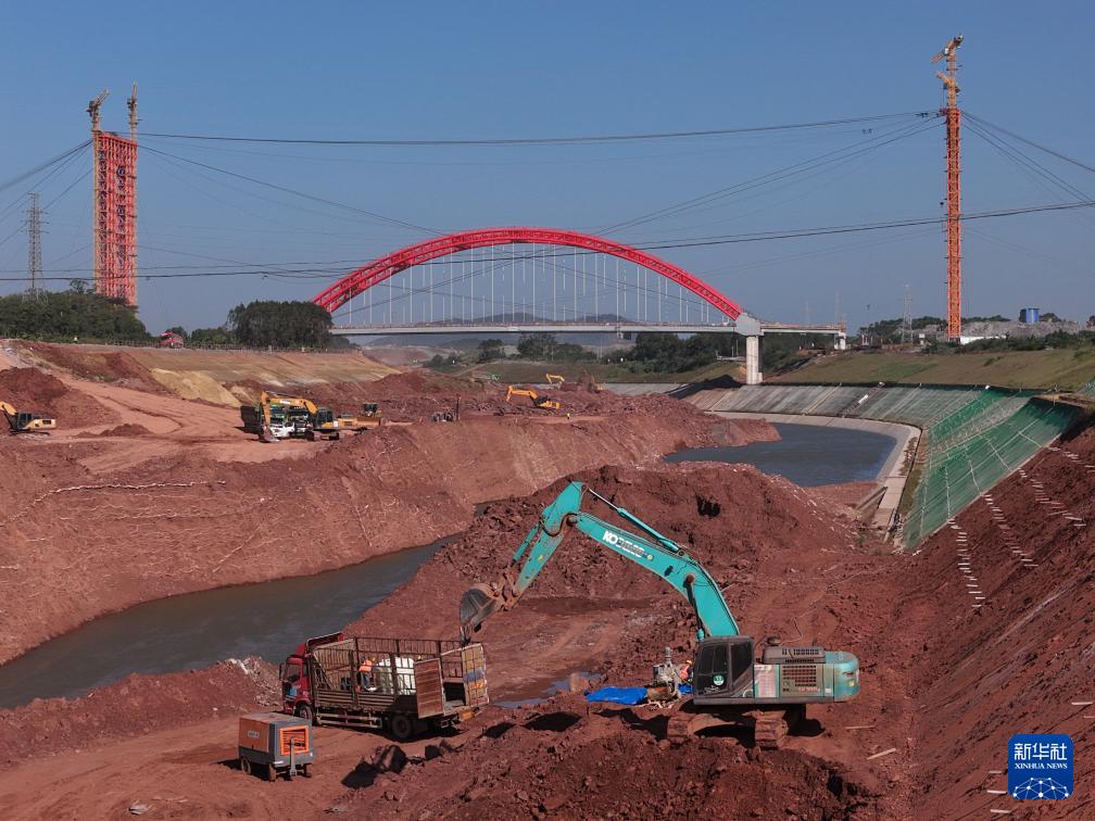 这是平陆运河企石枢纽建设现场(11月12日摄,无人机照片)。