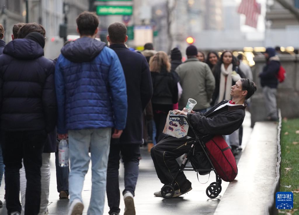 时值岁末,在美国纽约充满节日气氛的街头,时常可见无家可归者和其他寻求救助的人们。