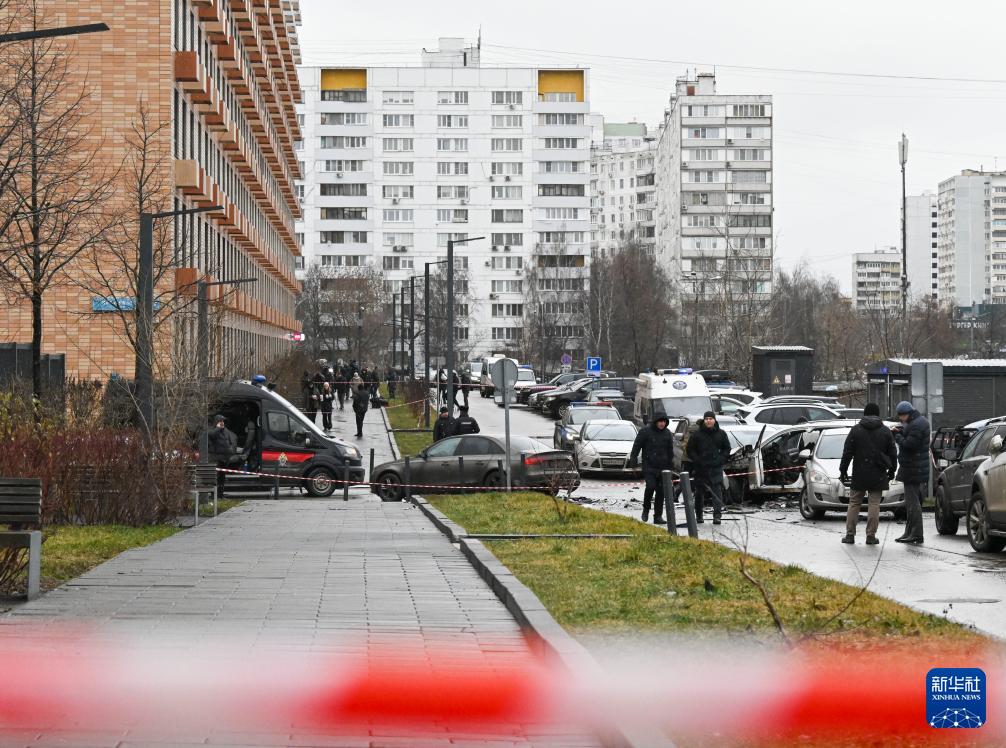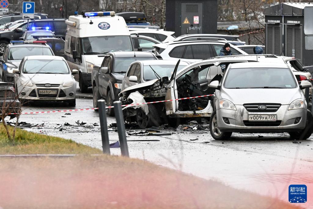 这是12月22日在俄罗斯首都莫斯科南部亚先涅瓦亚大街拍摄的汽车爆炸事件现场。