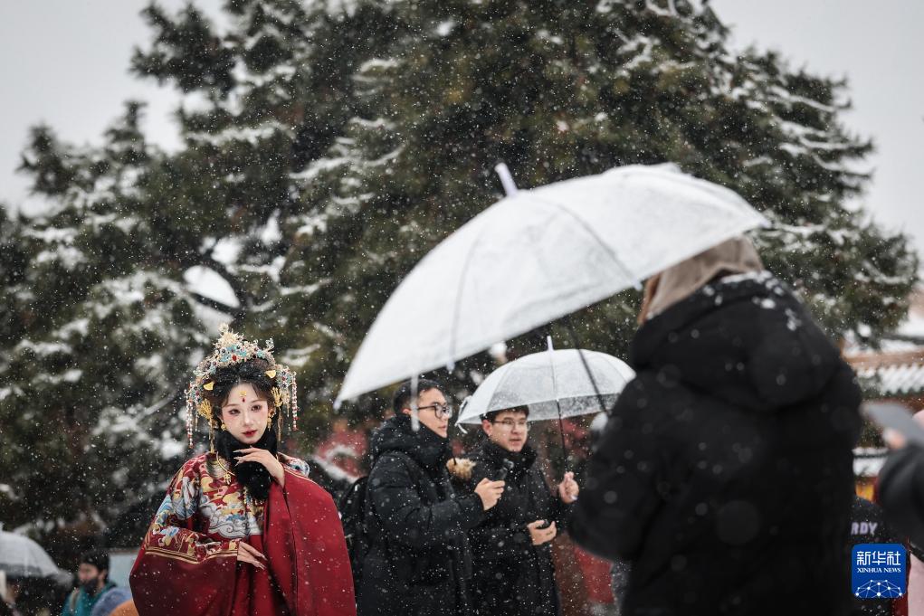 12月23日,游客在沈阳故宫博物院拍照。