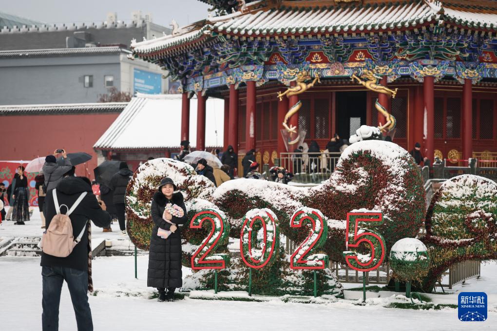 12月23日,游客在沈阳故宫博物院拍照。