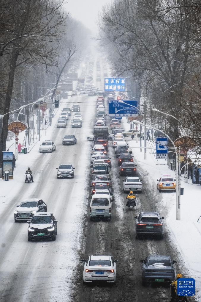 12月23日,受冷空气影响,吉林省长春市迎来中到大雪。