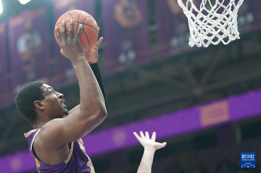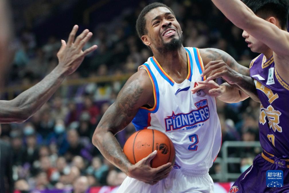 12月16日,天津先行者队球员詹姆斯在比赛中得分。