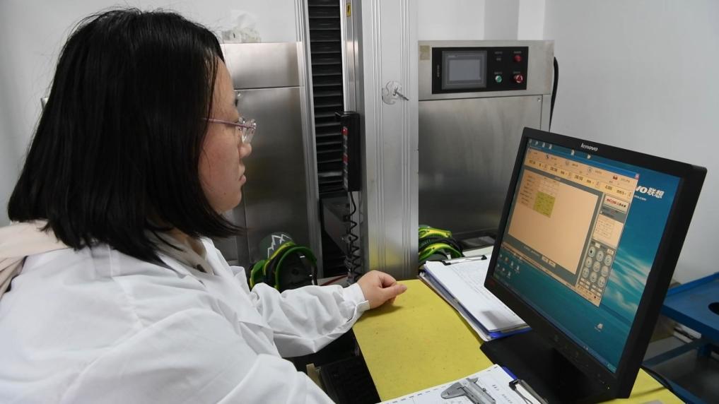 在泰山体育技术中心竞技体育产品检测实验室里,研发人员正对一款碳纤维滑雪板的静刚度、扭转强度等力学性能进行测试,验证复合材料在零度以下环境中的稳定性。