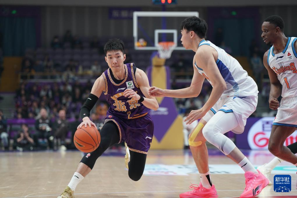 12月18日,北京控股队球员廖三宁(左)在比赛中突破。