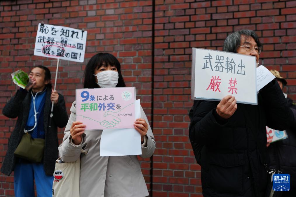 日本民众就执政联盟放宽武器出口限制的动向举行抗议集会