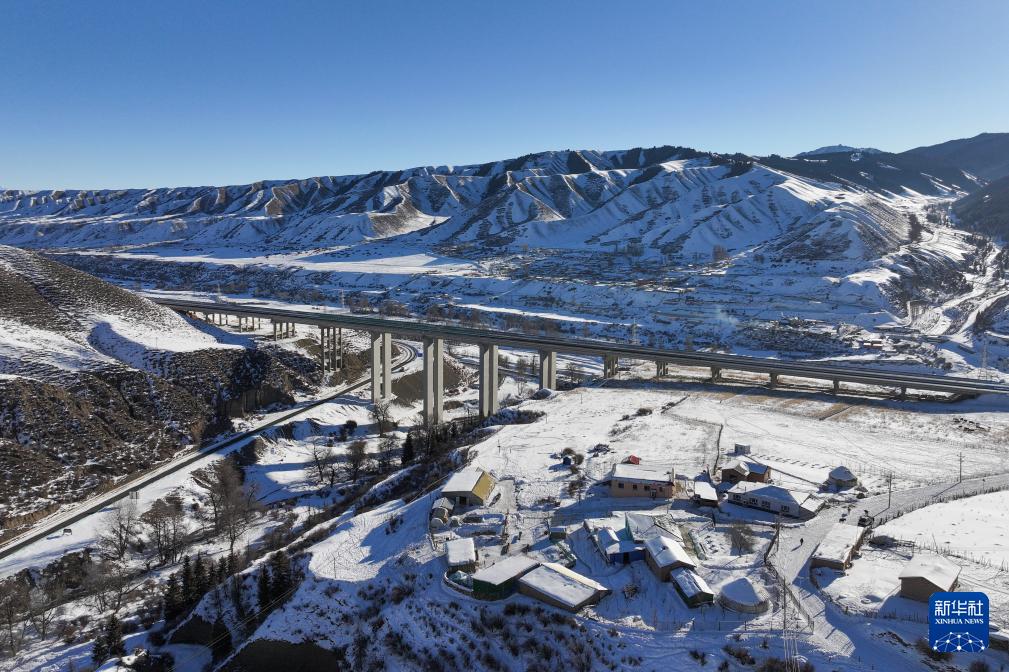 在新疆乌鲁木齐县拍摄的乌尉高速公路(12月23日摄,无人机照片)。