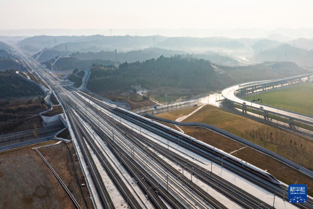 12月26日,列车驶入宜昌北站(无人机照片)。