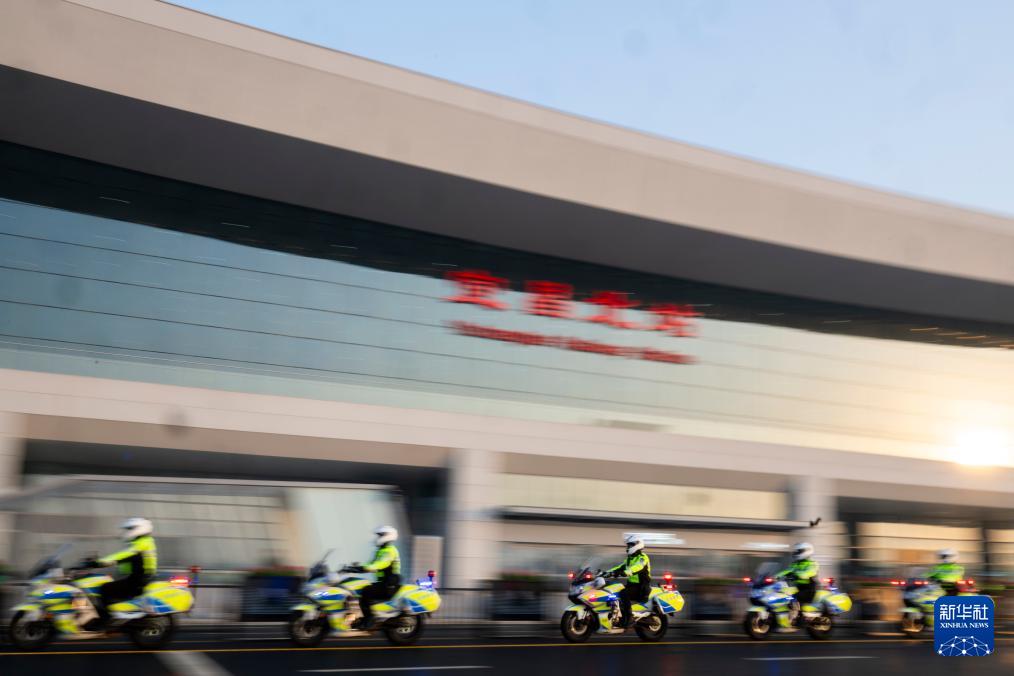 12月26日,宜昌骑警从宜昌北站站前广场驶过。