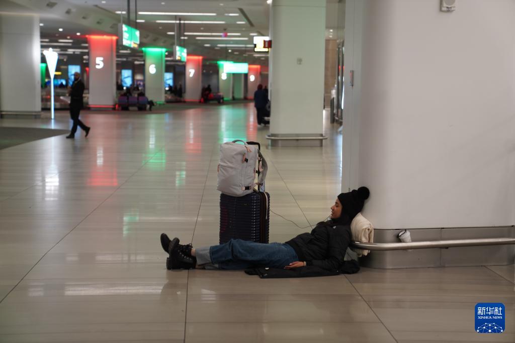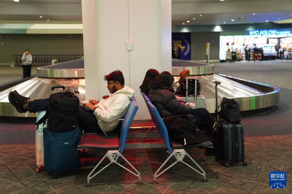 12月26日,乘客在美国纽约拉瓜迪亚机场休息。
