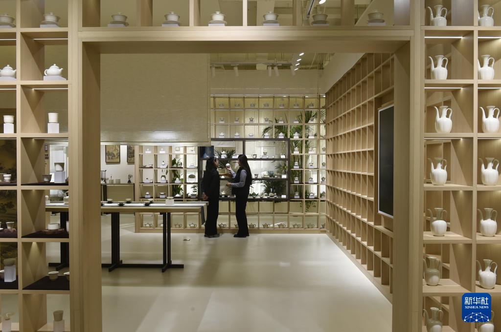 这是12月25日在河北省曲阳县拍摄的一家定瓷生产企业的展厅。