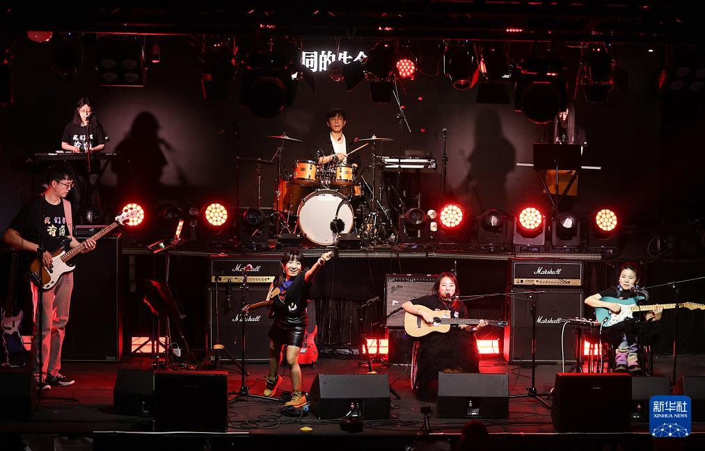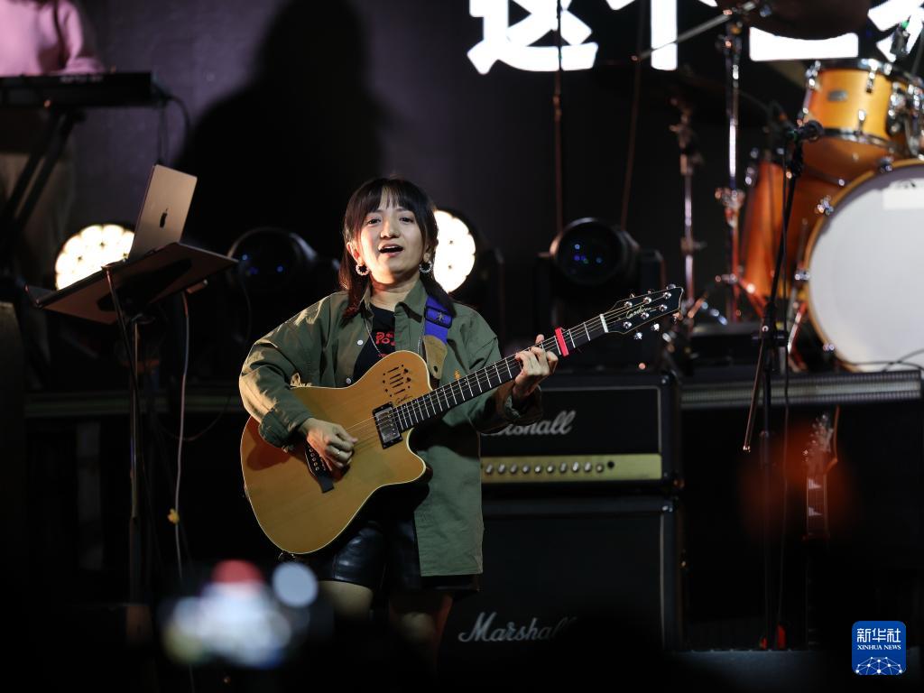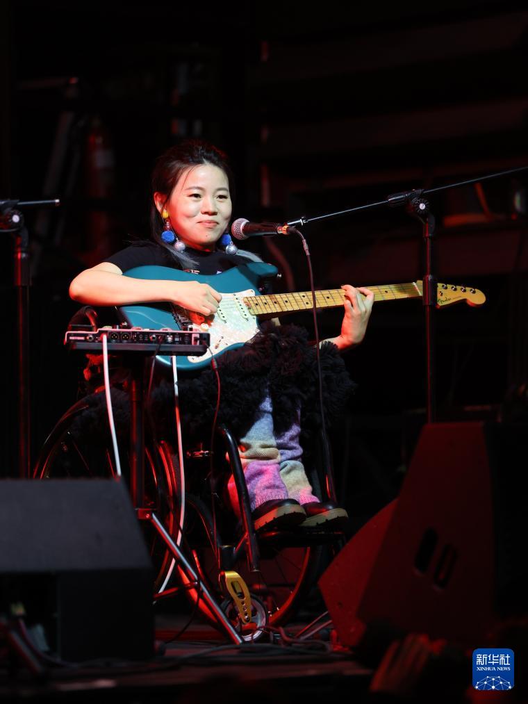 12月28日,乐队成员王奕鸥在舞台上演出。