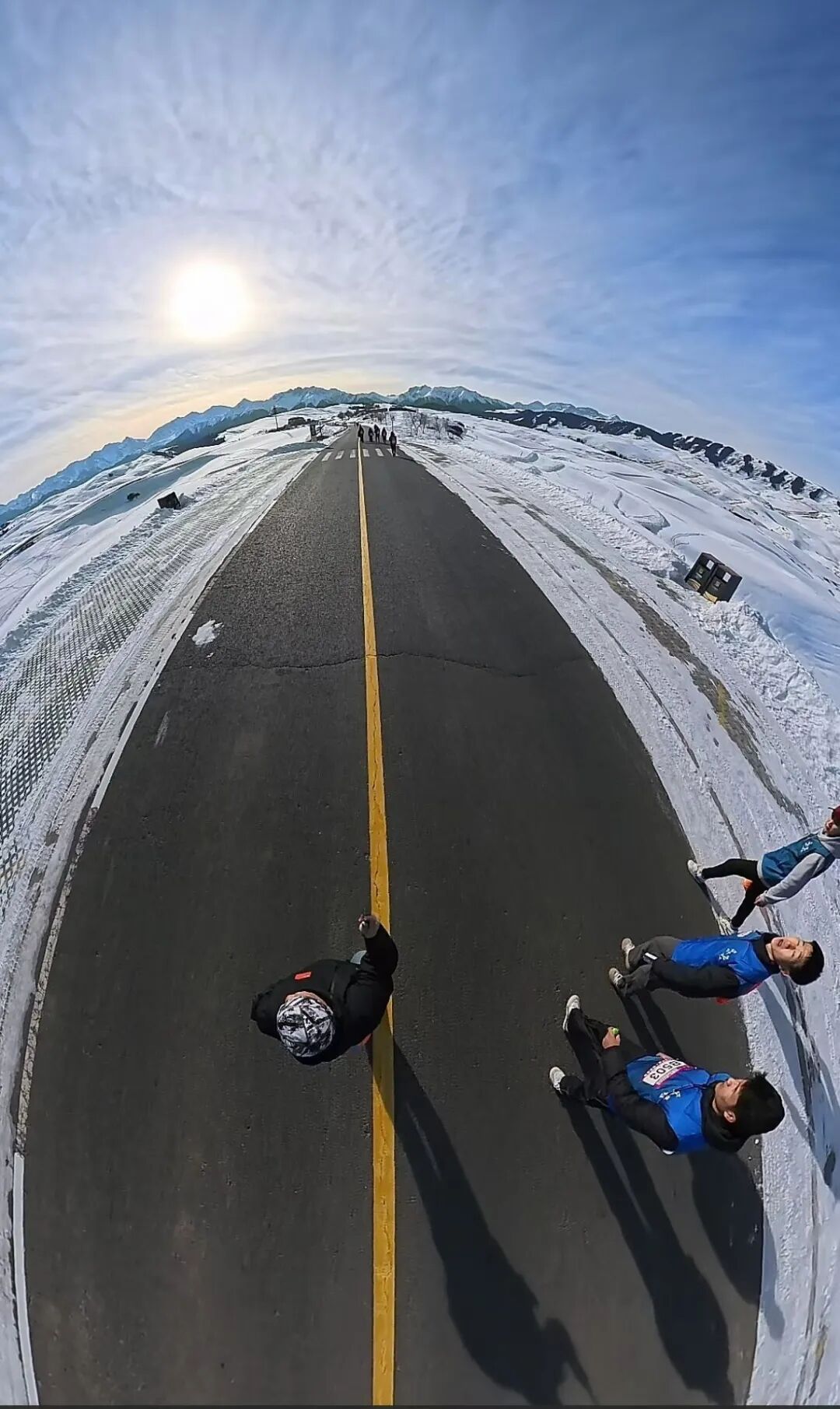 途经天山麦海,冬日的麦海虽不见金黄麦浪翻涌,却被茫茫白雪覆盖,呈现出一片银装素裹的静谧之美,仿佛童话世界中的梦幻场景;石城子遗址静静矗立在路旁,这座历经岁月沧桑的古城遗址,承载着厚重的历史,在冰雪映衬下更显古朴神秘,诉说着往昔的故事;疏勒城影视城带着历史的印记与影视创作的活力,为赛道增添别样风情,让人不禁遥想当年的金戈铁马。