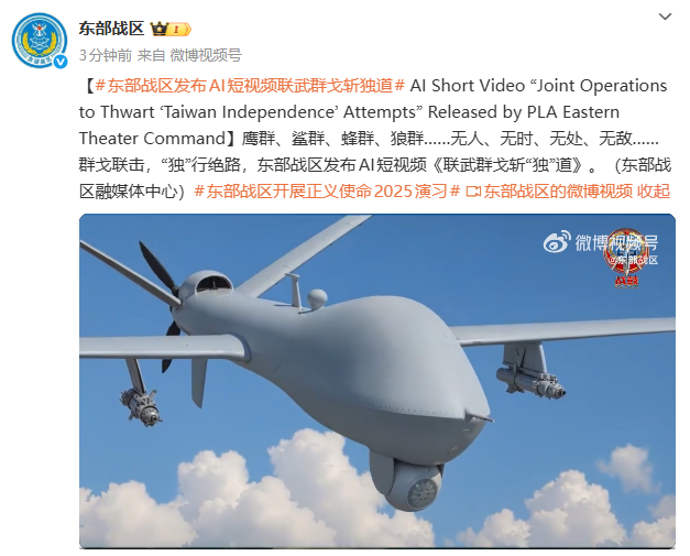 东部战区发布AI短视频《联武群戈斩“独”道》