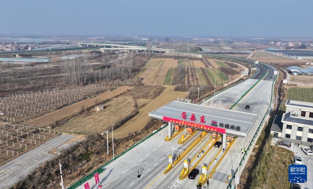 12月29日,车辆从眉县东收费站驶入陕西眉太高速(无人机照片)。