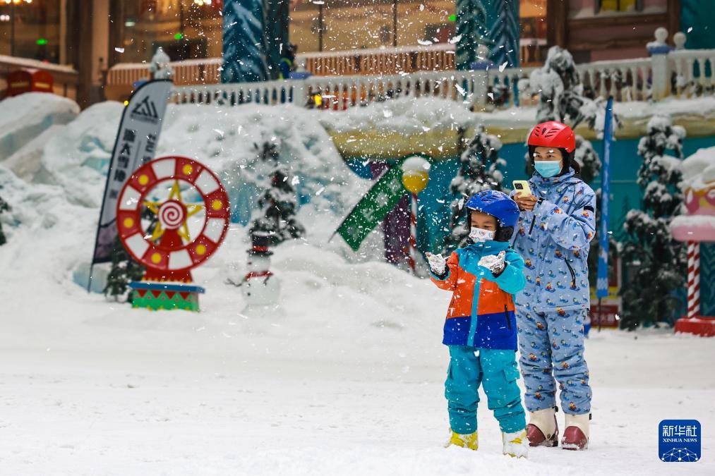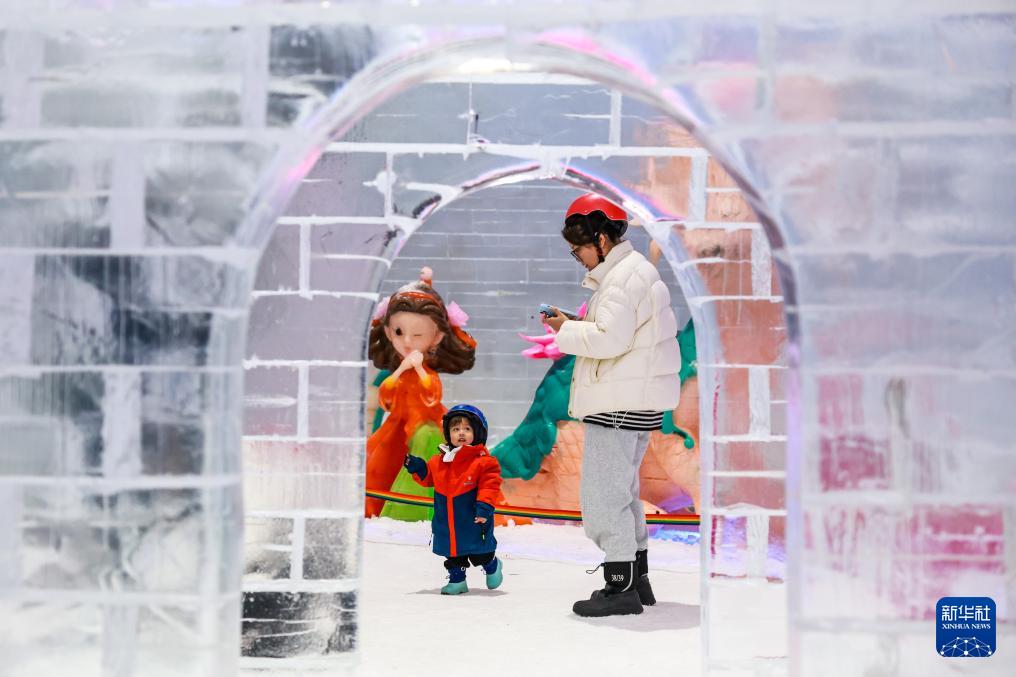 12月29日,游客在湖州太湖龙之梦乐园冰雪世界内游玩。