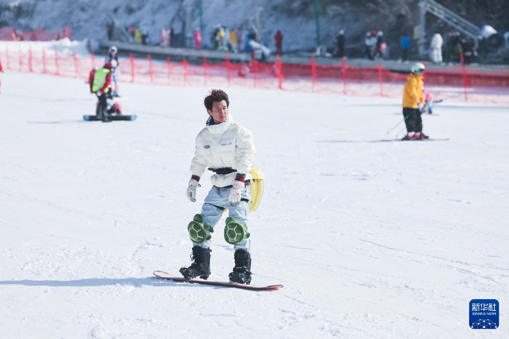 游客在湖州安吉云上草原滑雪场滑雪(12月28日摄)。