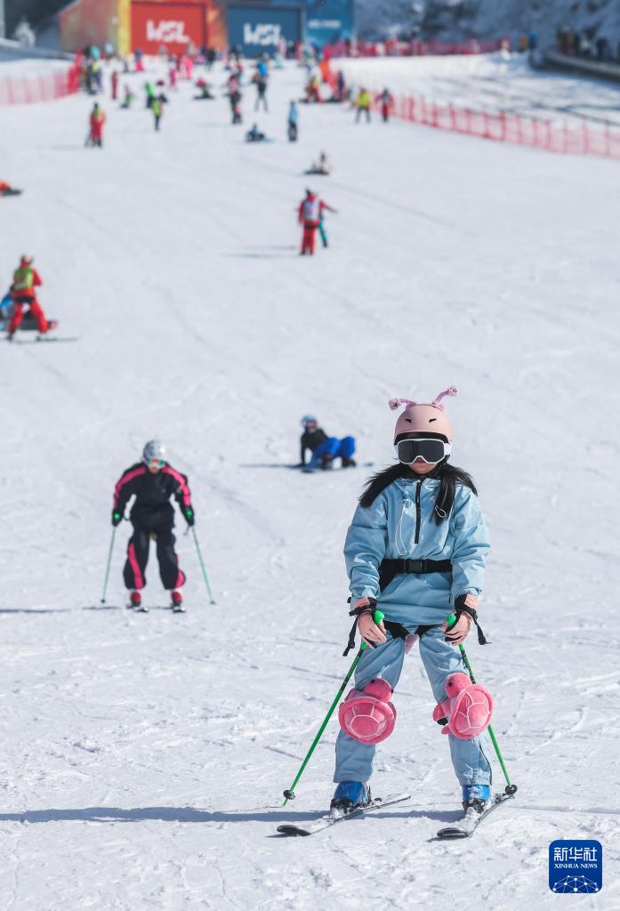 小朋友在湖州安吉云上草原滑雪场滑雪(12月28日摄)。