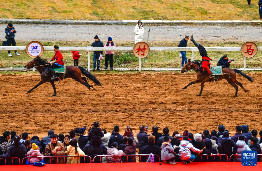 1月1日,骑手在贵州省三都水族自治县举行的“村马”马术表演中。