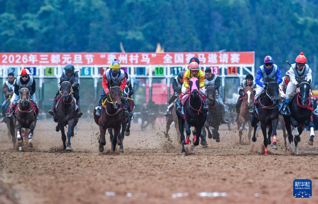 当日,2026年“贵州村马”全国赛马邀请赛在三都水族自治县举行,来自全国的多支代表队参加比赛。比赛期间举办马术表演、民俗展演等丰富多彩的活动,喜迎元旦节的到来。