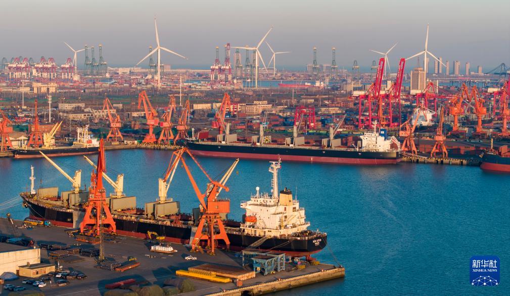 元旦假期,天津港各大港区巨轮频靠,一派繁忙景象。工人奋战一线抢抓生产,力争新年“开门红”。