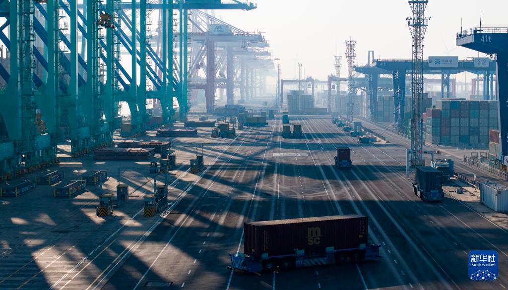 这是1月3日拍摄的天津港第二集装箱码头一景(无人机照片)。