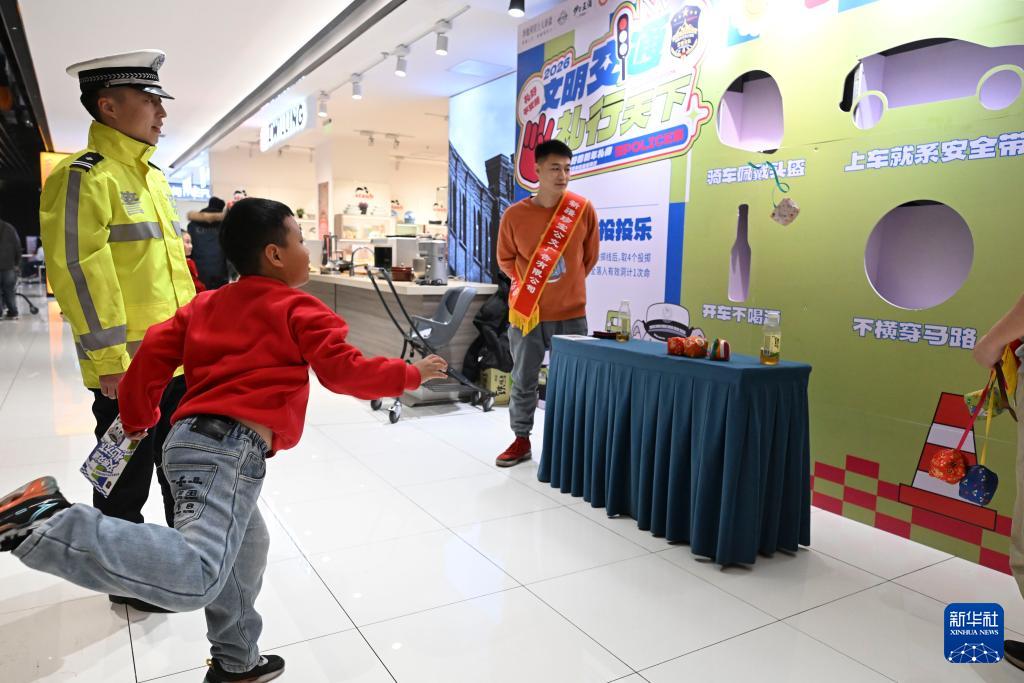 新年伊始,乌鲁木齐市公安局交通管理支队民警开展交通安全主题活动,通过在人流密集场所组织公益宣传、有奖问答等活动,倡导安全文明出行理念。
